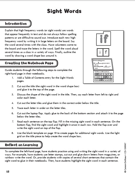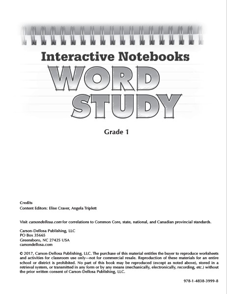 - Overview of the Carson Dellosa-Interactive Notebook Word Study Grade 1 Workbook